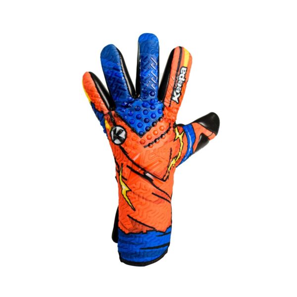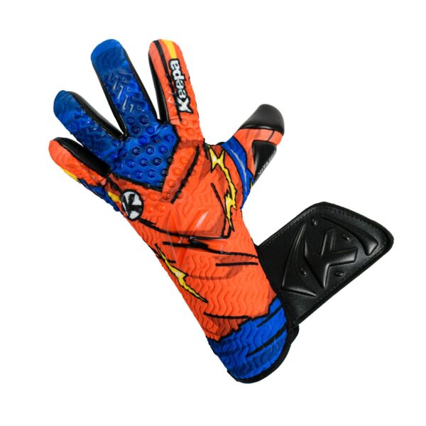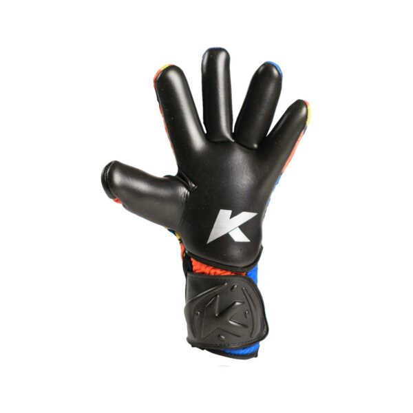 Dorso: neopreno transpirable con injertos de silicona que ayudan al armado del guante y darle más cuerpo a la zona. Palma látex vita grip con alto agarre y durabilidad moderada de un espesor de 3.5 mm de látex y 3.5 mm de esponja para la amortiguación de impactos del Balón. Broche: media vuelta de látex para darle una palma extendida y así darle visibilidad al área del dorso. Corte: roll negativo que ayuda a tener más contacto el látex con balón sin desproteger la palma y dedos