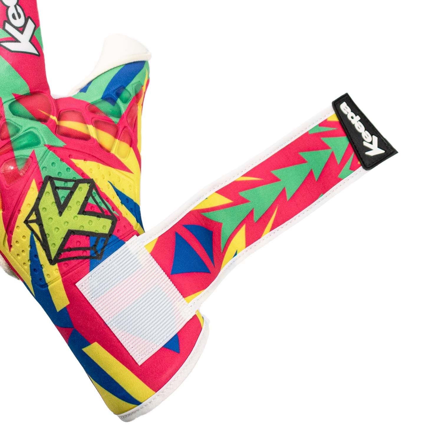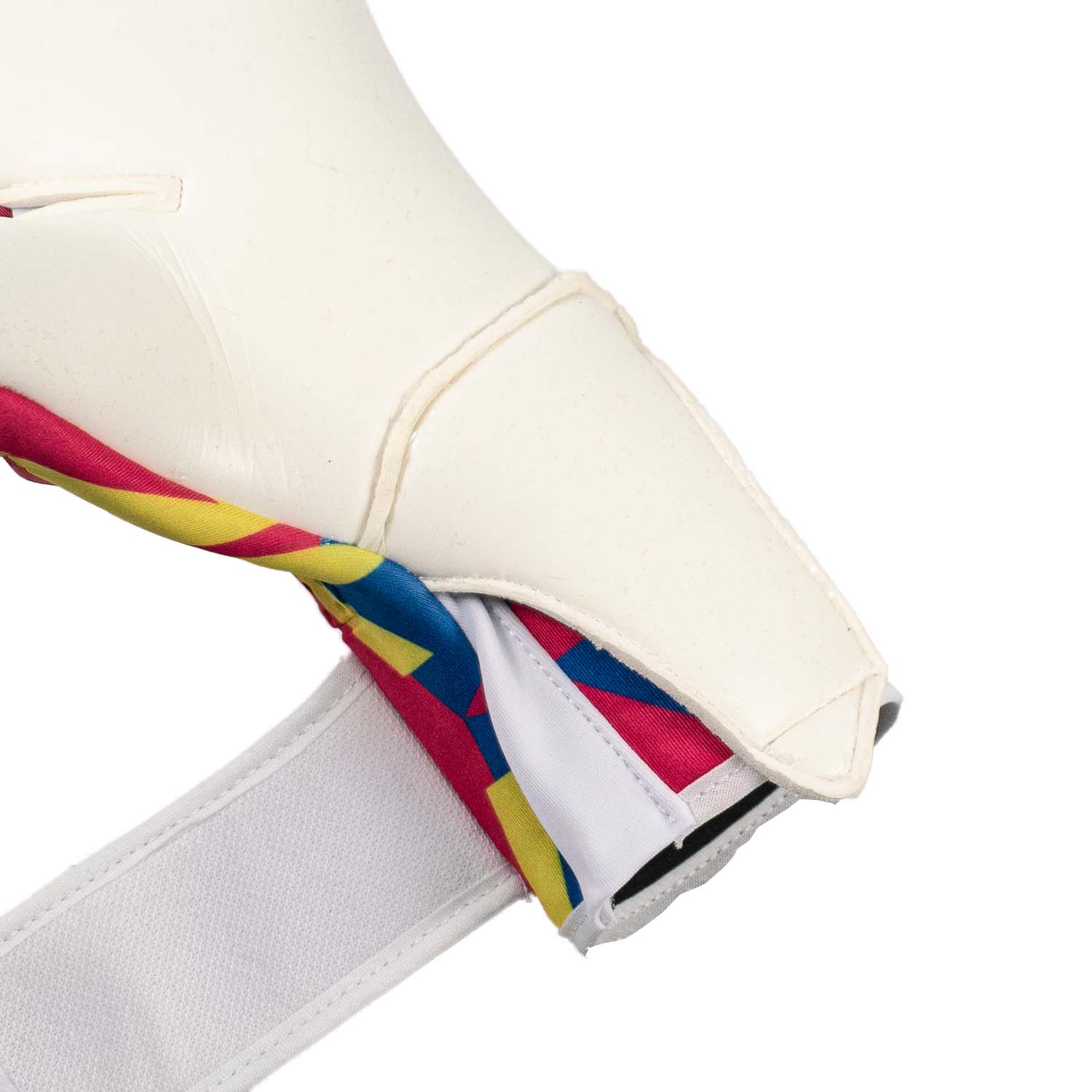 Corte: negativo híbrido con pulgar envuelto y dedo meñique envuelto para mayor contacto con el balón, con zona de transpiración entre los dedos para tener mayor ventilación.