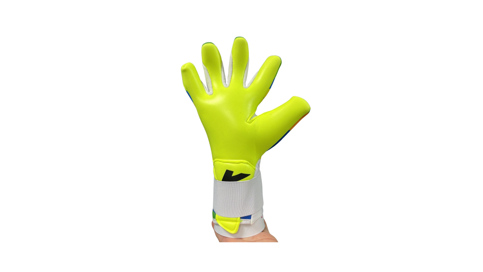 Corte: negativo híbrido con pulgar envuelto y dedo meñique envuelto para mayor contacto con el balón, con zona de transpiración entre los dedos para tener mayor ventilación.