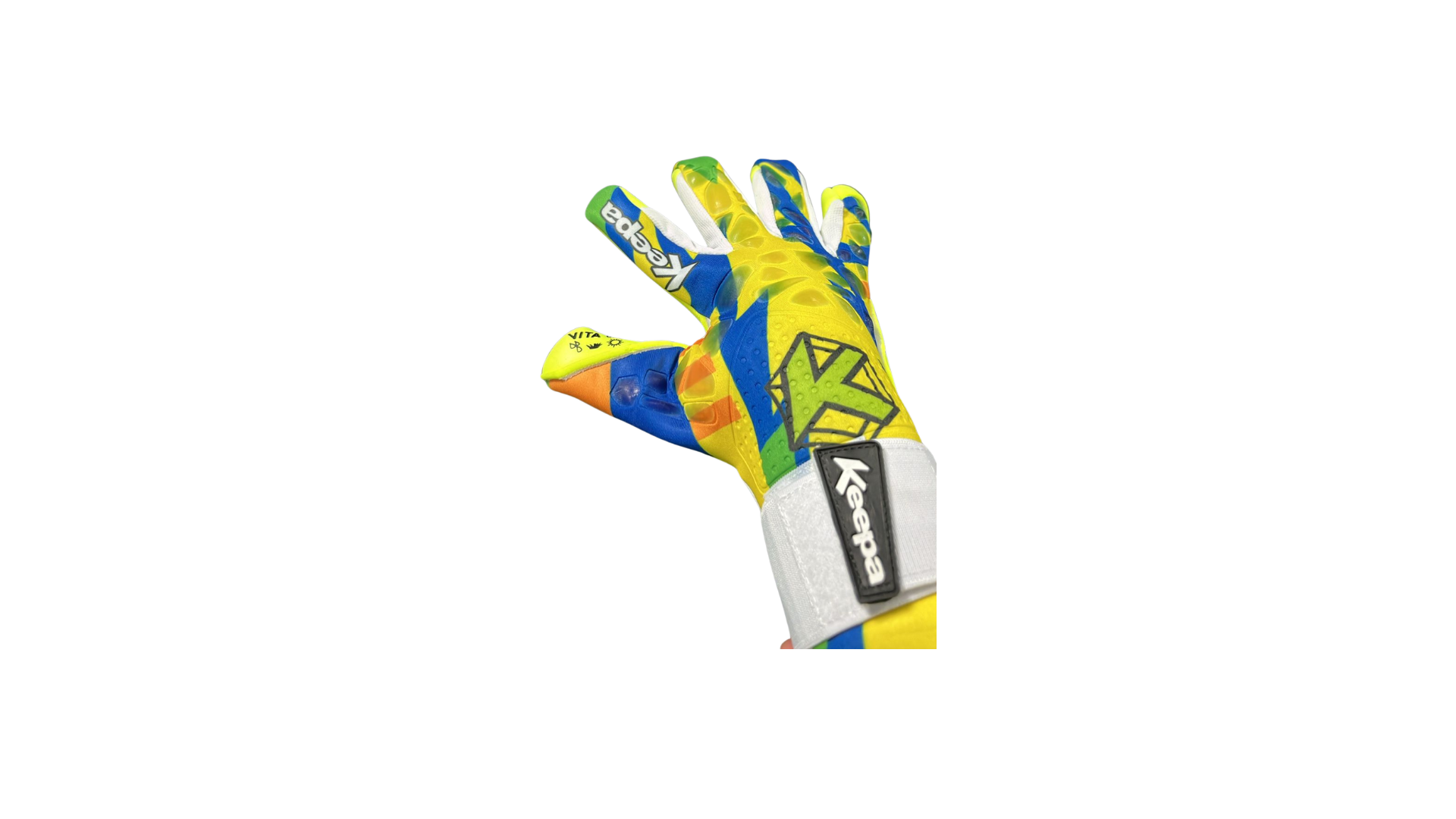 Palma látex vita grip con alto agarre y durabilidad moderada de un espesor de 3.5 mm de látex y 3.5 mm de esponja para la amortiguación de impactos del balón.