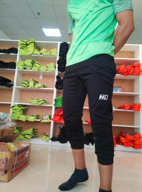 Pantalón 3/4 de arquero profesional hecho de 100% poliéster de alta calidad. Modelo SLIM FIT. El pantalón incluye una gran superficie acolchada a lo largo de las zonas de la cadera y la rodilla, ofreciendo una excelente protección en el césped artificial o las áreas de tierra dura. También se han incorporado varias áreas elásticas para ayudar al movimiento cuando se realiza una acción.