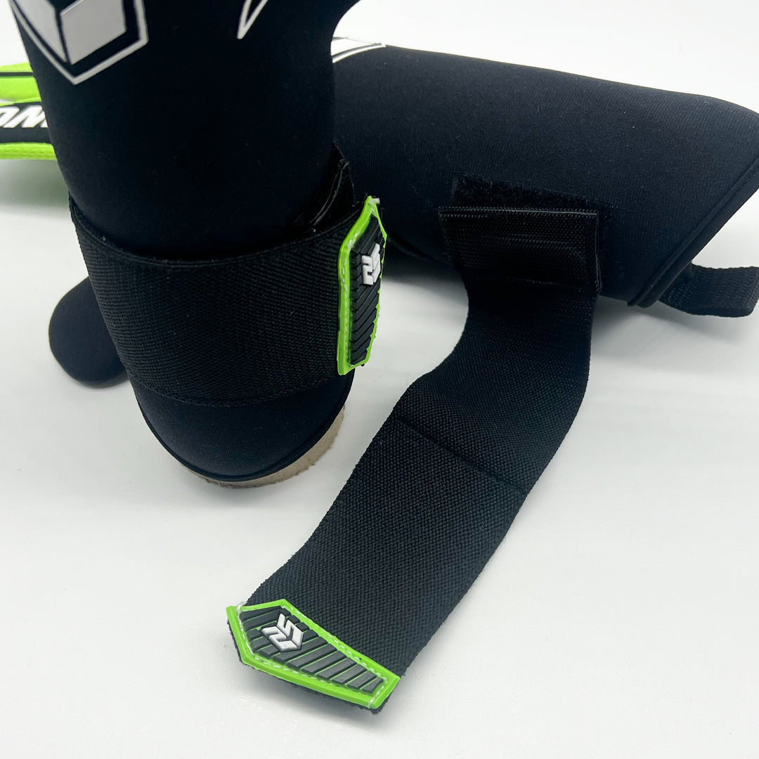 Tira elástica opcional con dos puntos de anclaje. Muñequera elástica que se ajusta perfectamente al contorno de la muñeca. Incluye tira de cierre de vuelta completa, opcional para los porteros que deseen mayor ajuste.