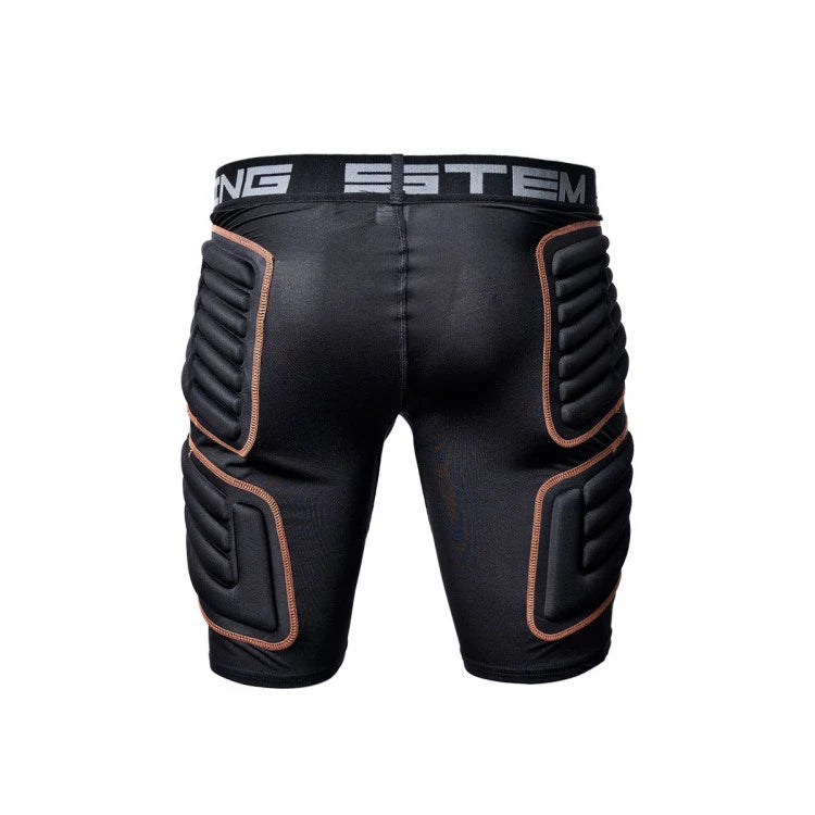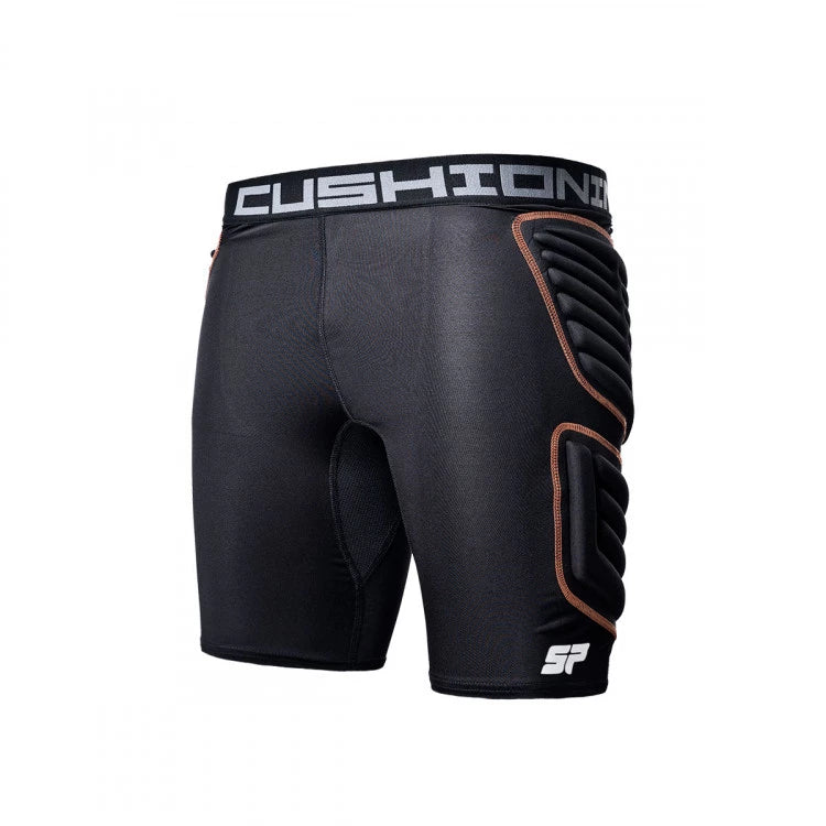 Calza corta para porteros de fútbol fabricada en licra y con protecciones EVA PROTECTION en caderas. La goma EVA es uno de los materiales con mejor absorción de impacto del mercado. Mediante una técnica de termomoldeado las protecciones presentan multiples canales de flexión para adaptarse a la anatomía del futbolista.