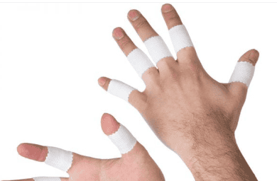 cinta tipo leucotape especial para vendar las falanges de los dedos.