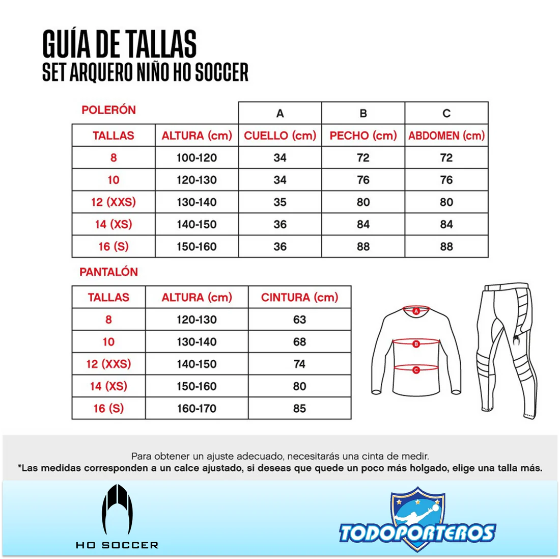 EL KIT INCLUYE POLERA DE ARQUERO CON PROTECCION EN LOS CODOS Y PANTALON DE ARQUERO CON PROTECCION EN LAS CADERAS Y RODILLAS.